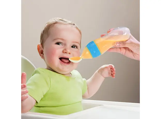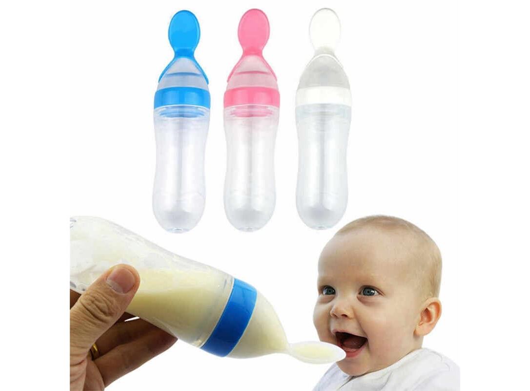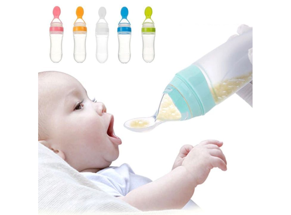 90ml baby spoon feeder Silicone Squeeze Spoon Feeder Portable Baby Bottle with spoon for Baby Rice Cereal and Infant Food