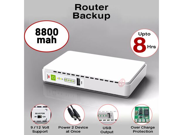 Stay connected during power outages with the Mini DC UPS 8000mAh Portable Power Supply. Designed for routers, modems, CCTV cameras, and other low-voltage devices, this compact yet powerful backup unit provides uninterrupted power with selectable voltage outputs.