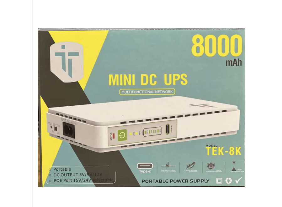 Mini DC UPS 8000mAh – Portable Power Backup for Router & CCTV (Model TEK-8K)