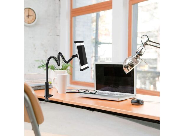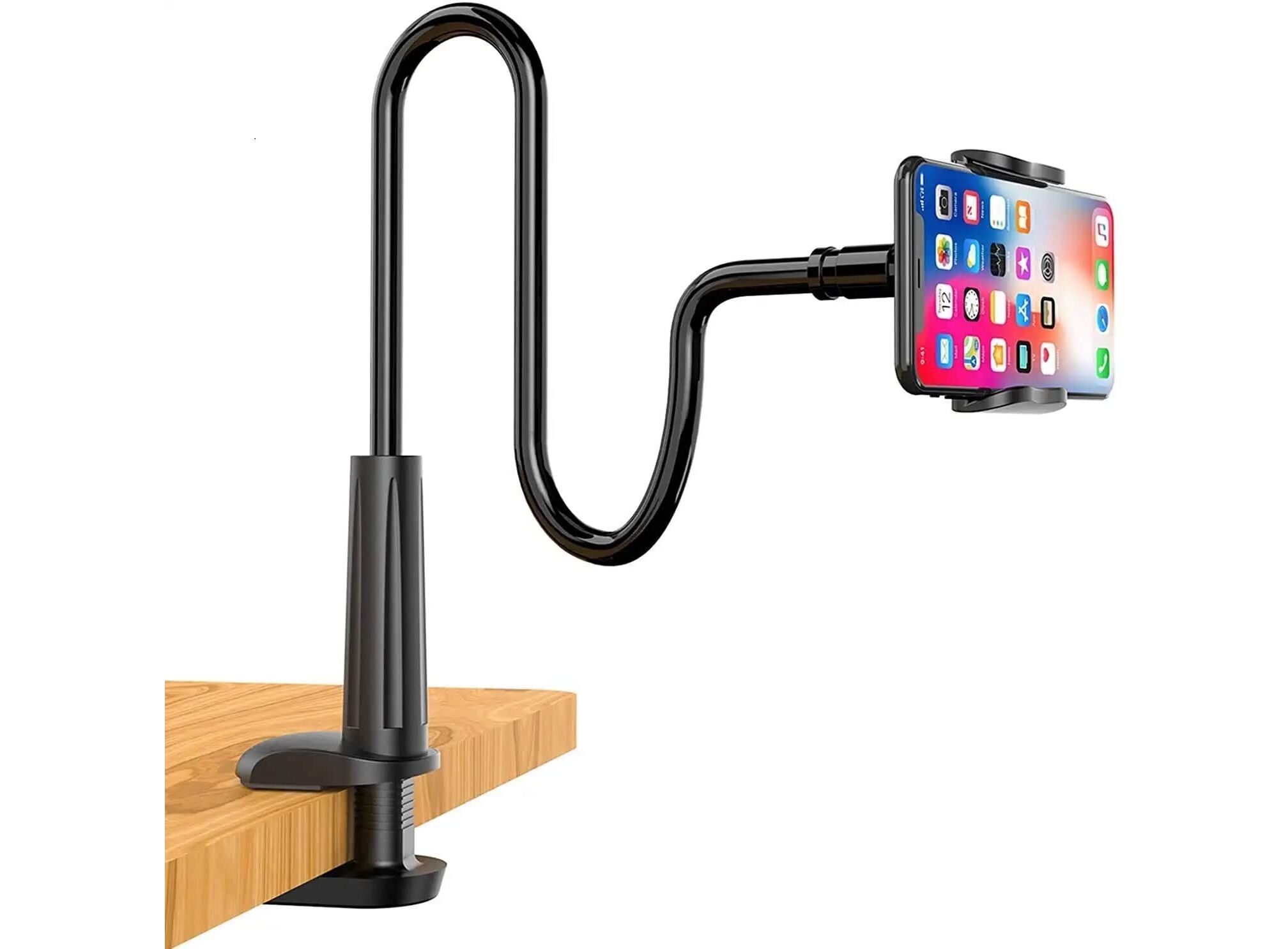 Enjoy hands-free comfort while watching videos, attending online classes, or video calling with this Clamp Mobile Holder for Desk. Designed with a strong clamp and flexible adjustable arm, it securely holds your smartphone at any angle you prefer. The 360° rotation feature makes it easy to adjust your phone for perfect viewing, whether on your desk, bed, or kitchen counter.