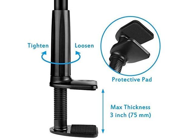 Strong Clamp Design: Easily attaches to desks, tables, or bed frames.