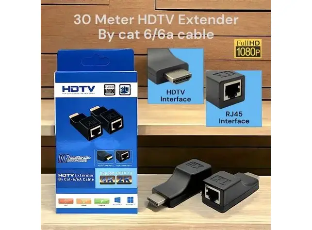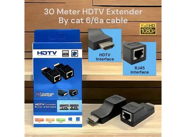 This HDTV Extender lets you send high-definition video and audio signals over long distances—up to 30 meters—using a single CAT-6 or CAT-6A cable. It’s an ideal solution for environments where standard HDMI cables fall short due to distance limitations, cost, or installation flexibility. Whether you're designing a professional AV setup, installing a projector system in classrooms, or simply extending your home entertainment system, this compact HDMI extender gives you seamless Full HD video quality, ease of use, and reliable performance without needing a power adapter.