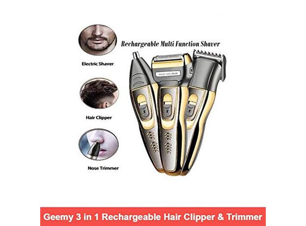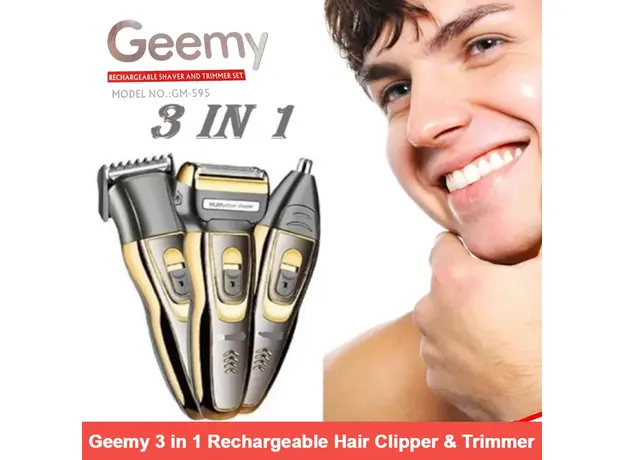 Geemy GM-595 – 3 in 1 Professional Rechargeable Hair Trimmer | Beard, Nose & Hair Cutter