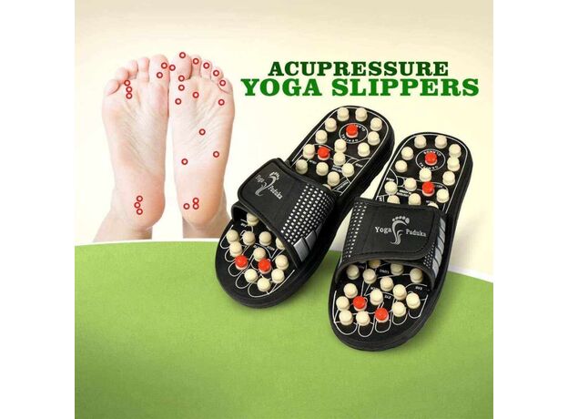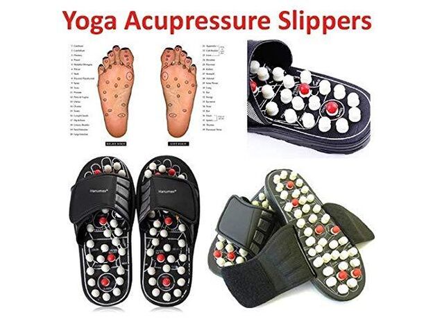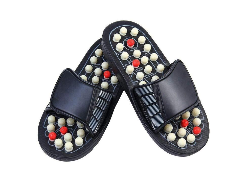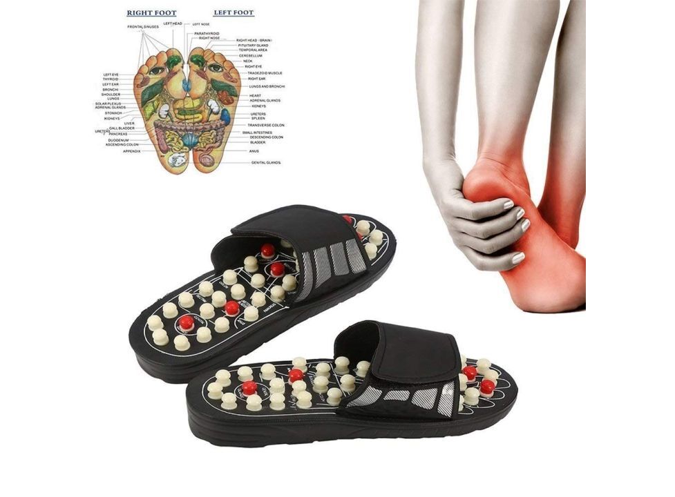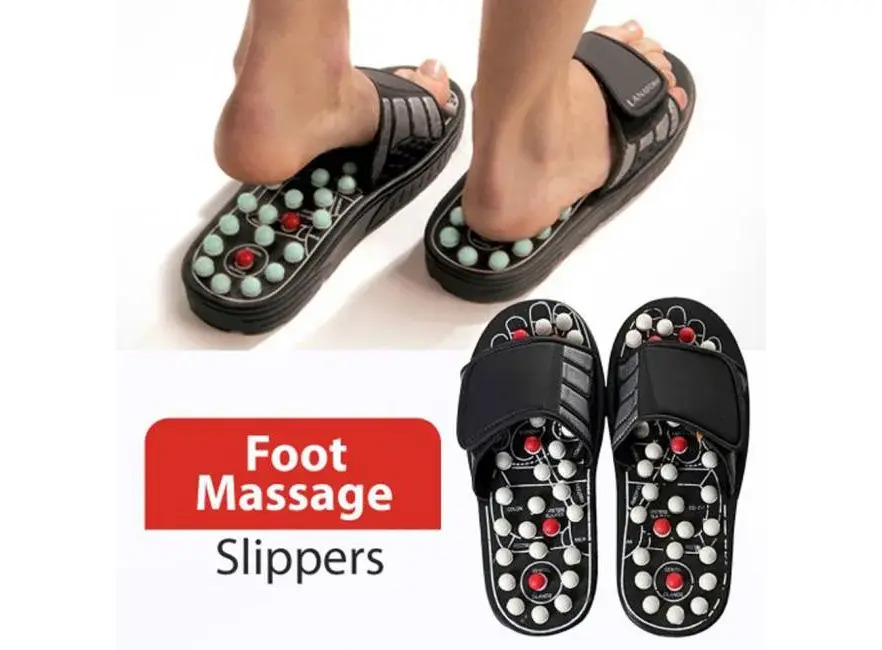 Reflexology slippers reduce pain and swelling in the ankle and help you get relief from headaches and migraines if used regularly for a daily 30-minute walk. To relieve thigh pain or lower back pain, apply pressure by wearing reflexology slippers for few minutes, to soothe the nerve tendons between the outer ankle bone and the Achilles tendon.