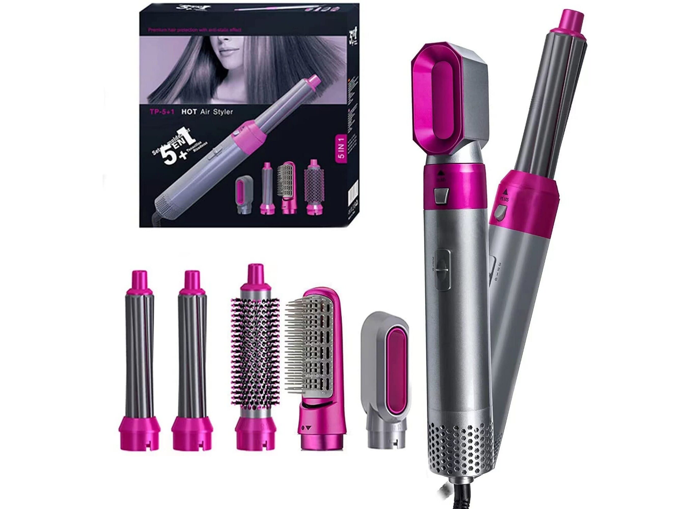 Functions: Hair dryer, straightener, curler, volumizer, styling brush