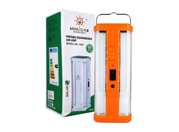 Minling ML-1664 Solar Rechargeable Emergency Light | Dual Charging | Portable LED Lantern