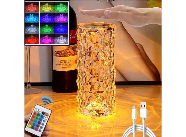 Citaaz (3 Color Crystal Diamond Table Lamp LED Atmosphere Lamp Adjustable for Bedside Bedroom Night Light)