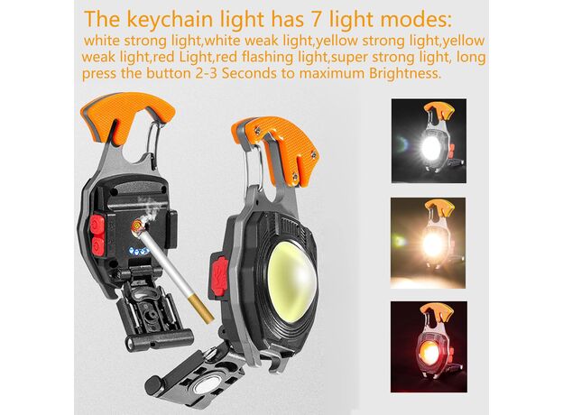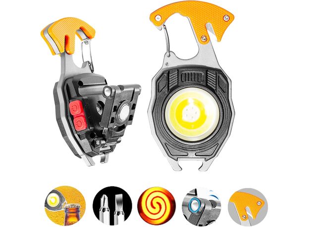 - Multi-Functional Keychain Light - This COB keychain light is equipped with 2 size screwdrivers + 1 whistle+ bottle opener + seat belt cutter+ fire starter, which makes it not only works as a flashlight, but also a multitool, and perfect for handling various emergencies.