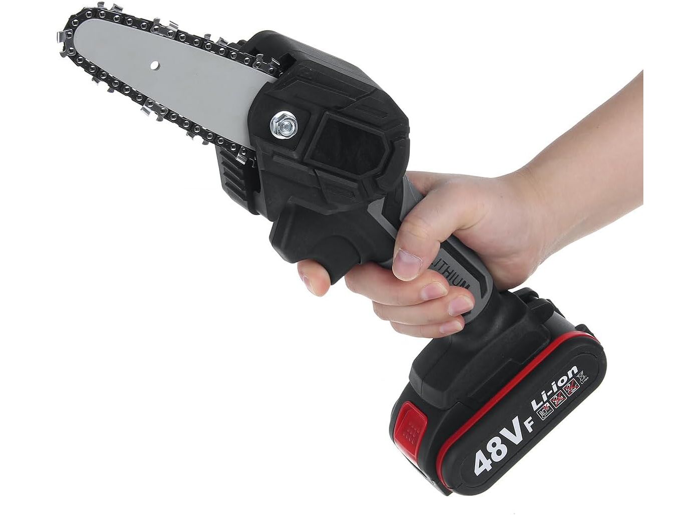The 48V Mini Electric Chainsaw is a compact yet powerful tool designed for effortless cutting, pruning, and trimming. Equipped with a high-efficiency copper motor and sharp chain, it delivers smooth and fast cutting performance. Its cordless design offers full freedom of movement, while the ergonomic handle ensures a secure and comfortable grip. Perfect for gardening, firewood cutting, and DIY wood projects — ideal for both home and professional use.