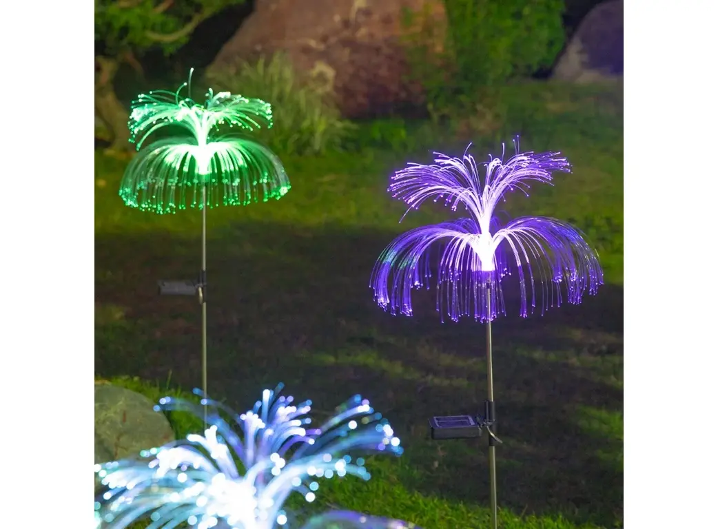 Solar fiber light: with solar panel, solar outdoor garden light automatically recharges during the day. The fiber optic material and flower shape make the solar lamp unique and can illuminate your garden well. After being fully charged, the solar garden light will last for 8-10 hours until the power is cut off. No need for extra wires, no electricity.