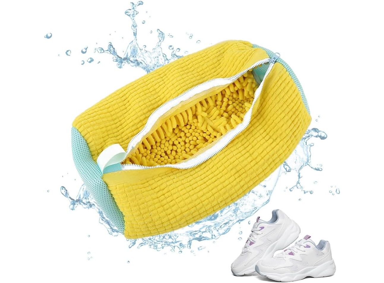 The thick padded mesh allows water and detergent to flow through easily while cushioning your shoes against impact. Ideal for sneakers, sports shoes, baby shoes, and other delicate footwear.