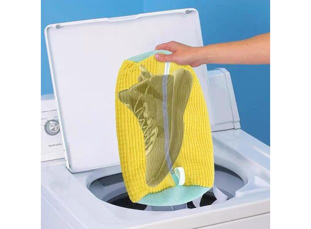 Keep your shoes protected while washing with this durable Washing Machine Shoe Bag. Designed with breathable mesh fabric and a secure zipper closure, this laundry bag prevents damage, tangling, and deformation during machine wash cycles.