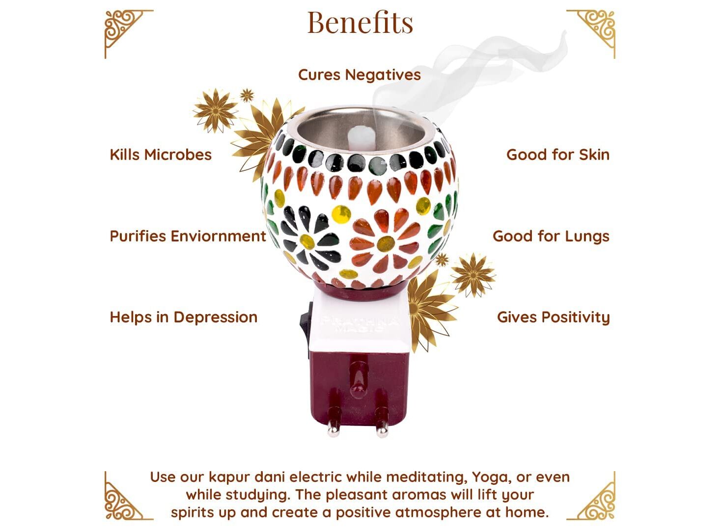 - Versatile Use: Ideal for use during pooja (prayer) ceremonies, meditation, or as an everyday enhancement to your home. It also helps in keeping mosquitoes at bay, ensuring a more comfortable environment.