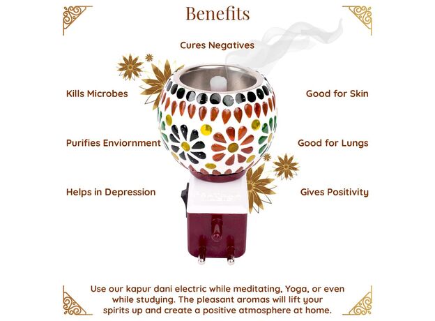 - Electric Operation: This Kapur Dani is powered electrically, making it easy to use and maintain. Simply plug it in, and enjoy the seamless integration of light and fragrance in your space.
