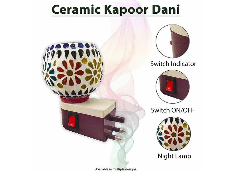 - Dual Functionality: The ceramic Kapur Dani features a built-in lamp and a camphor burner. With a simple on/off switch, you can control the lighting and incense diffusion independently, offering flexibility and convenience.