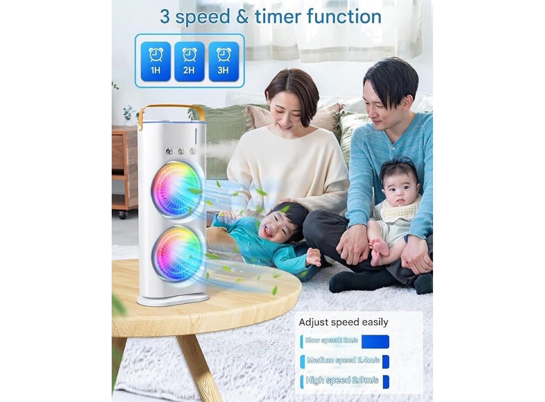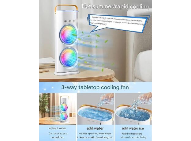 - Health Benefits: The misting function helps to hydrate the skin and alleviate symptoms of heat-related discomfort, such as sweating and fatigue.