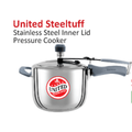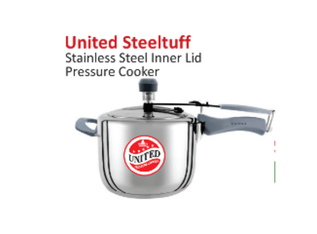 The United Triply Inner Lid Pressure Cooker is designed for fast, even, and safe cooking. Built with triply stainless steel technology, it ensures efficient heat distribution and prevents food from sticking or burning. The inner lid design provides extra safety, making it perfect for everyday cooking. Suitable for all types of stoves, including gas and induction.