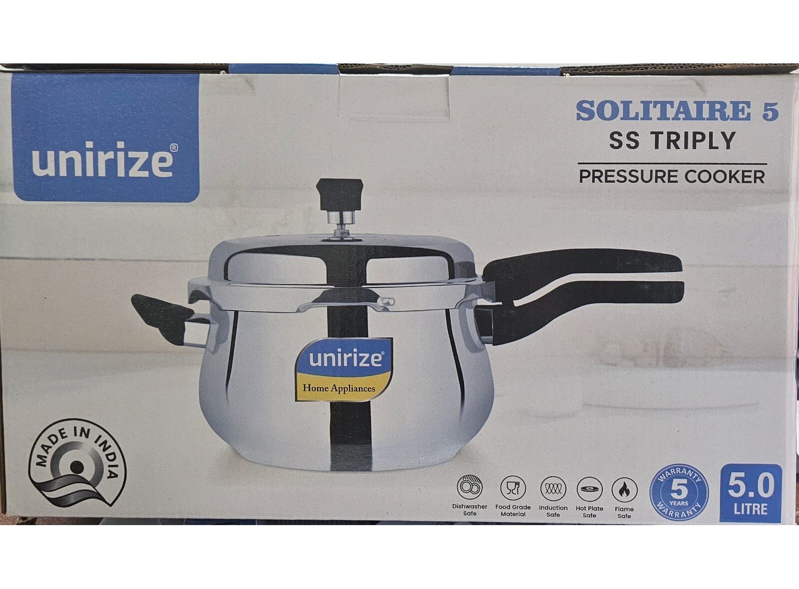 Unirize | Triply Outer Lid S S Big belly Pressure Cooker Solitaire - 5L