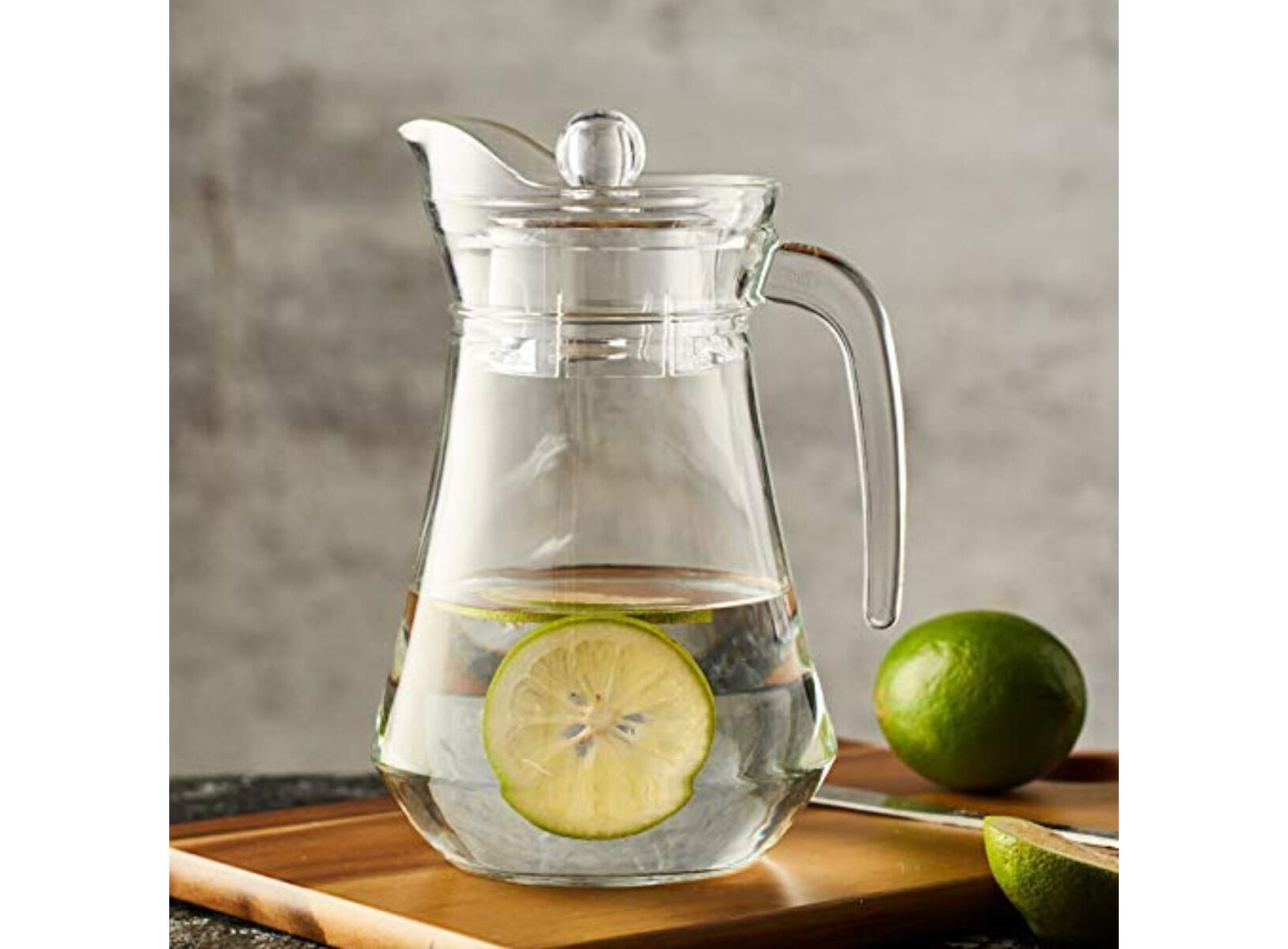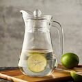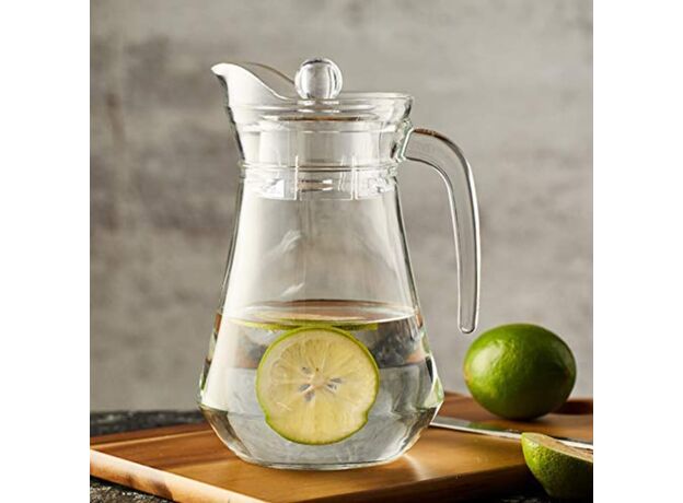 Serve your favorite drinks in style with this elegant 1100ml glass jug. Made from high-quality, heat-resistant glass, it is perfect for both hot and cold beverages such as water, juice, iced tea, and coffee. The clear design allows you to easily monitor contents, while the secure lid helps prevent spills and keeps drinks fresh. Its ergonomic handle ensures a comfortable grip, making pouring effortless. Ideal for home, office, or gatherings, this jug combines functionality with modern simplicity.