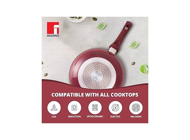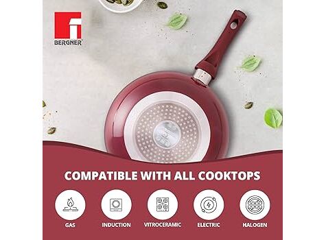 The ergonomic handle of this non-stick frying pan is made of a material that maintains a comfortable temperature even when you place it on the stove. It is crafted for giving you full control over the pan as it is attached to it with strong rivets.