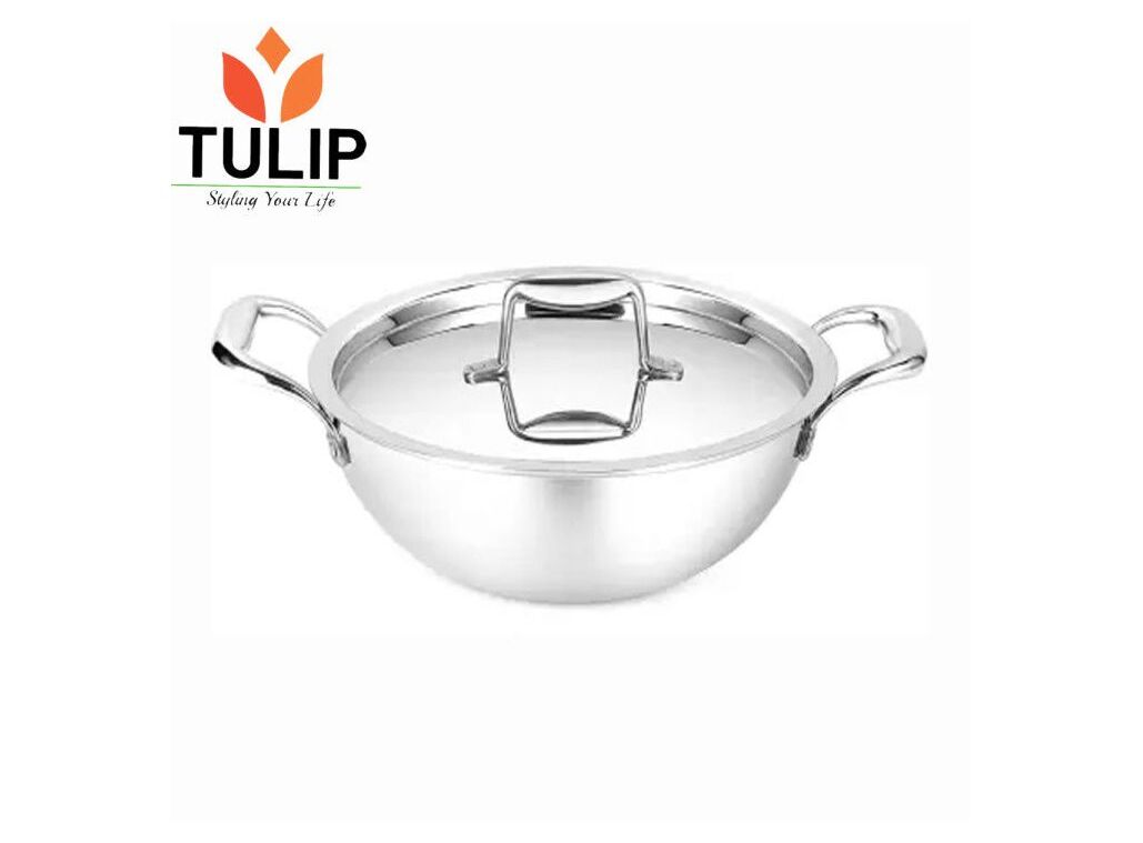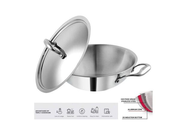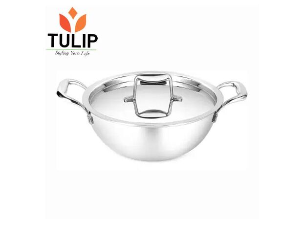 Tulip Triply Stainless Steel Kadhai with Lid - 24cm