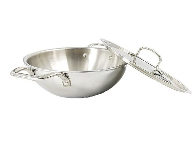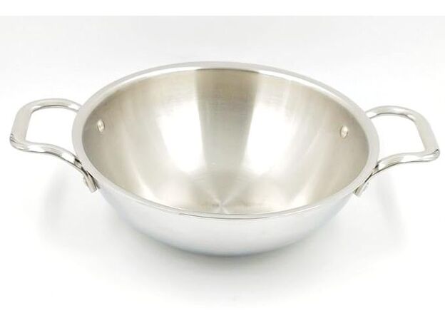 - HEAVY-DUTY STAINLESS STEEL – For balance of look and functionality, this kadai is built from high quality stainless steel with a heavy-duty 3 layer bottom. High-quality stainless steel means it will never easily scratch, break, rust or corrode, and it shall ensure faster cooking to reduce chances of food sticking/hot spots; hence without hassle you can cook or fry food.