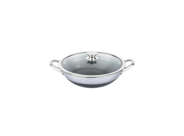 This stainless steel honeycomb kadai is designed with a honeycomb-textured inner surface and durable stainless steel outer body for healthy and efficient cooking. The honeycomb pattern reduces food sticking, ensures even heat distribution, and protects the surface from scratches. Comes with a heat-resistant transparent glass lid for easy monitoring while cooking. Perfect for deep frying, curries, vegetables, and daily cooking needs.