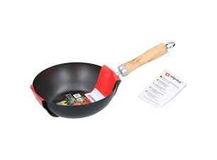 28cm Iron Nonstick Wok Fry pan with Wooden Handle – Lightweight Deep Fry Pan