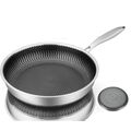 This stainless steel honeycomb frypan features a honeycomb-textured cooking surface with stainless steel inner and outer body, designed for durable and healthy cooking. The honeycomb pattern helps reduce food sticking, improves heat distribution, and protects the pan surface from scratches. Ideal for everyday frying, sautéing, and shallow cooking on multiple heat sources.