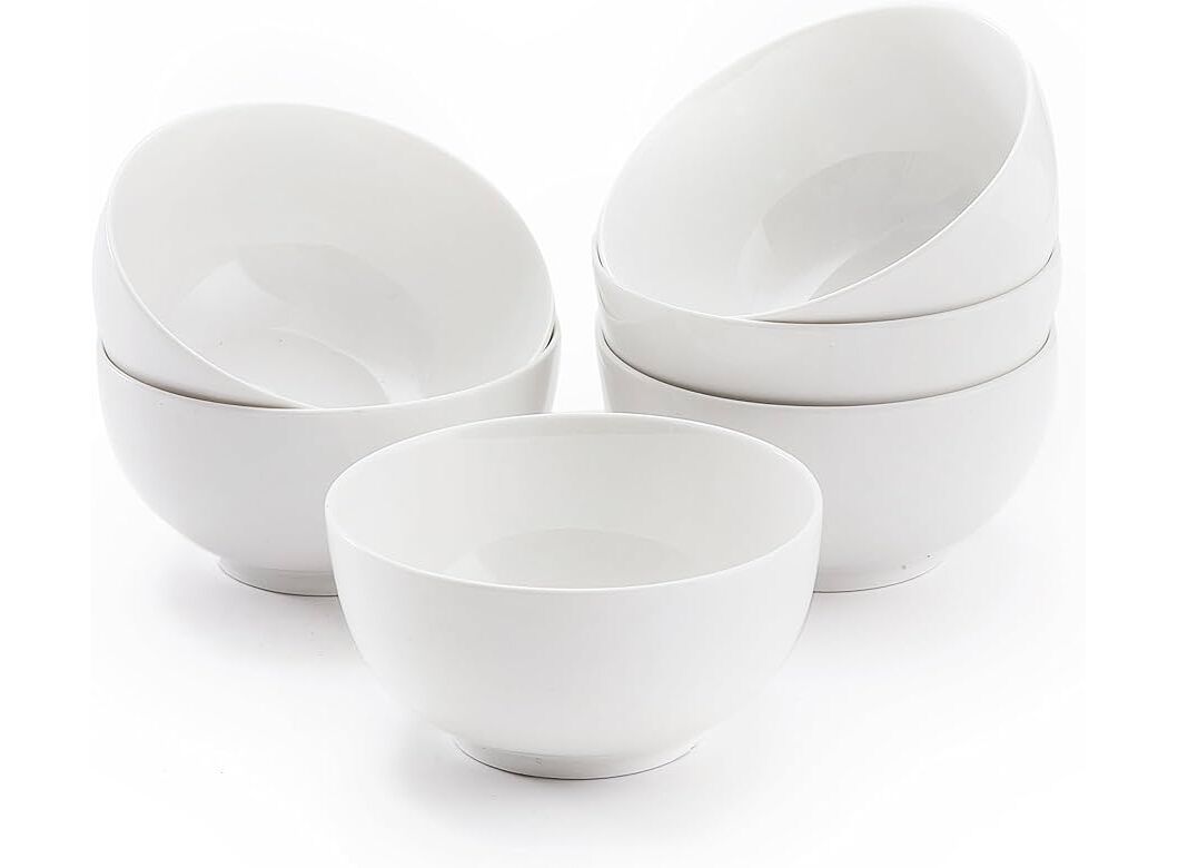 6pcs 6inch Plain white ceramic bowls set for Kitchen, Side Dishes, Ice Cream Rice Soup Snack Cereal
