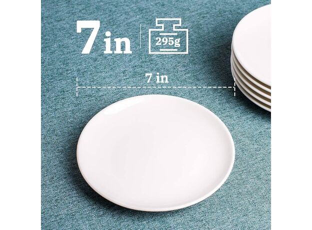 6pcs - Round 7Inch White ceramic Dinner Plate/Salad Plate - Small Round Serving Plates for Snacks, Side Dishes, Pasta, Microwave & Dishwasher Safe