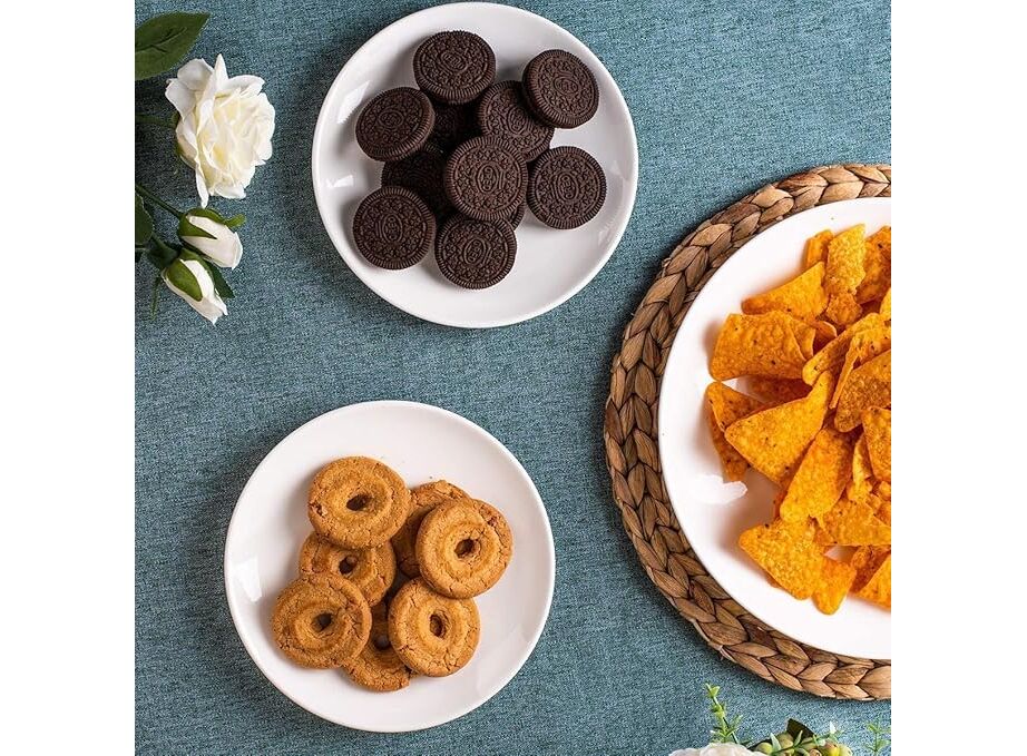 - Versatile: 7 x 7 x 1 inch, perfect size for your everyday snacks, sides, breads, cheese, fruits, and crackers and more. Dress up or down with its ease and elegance of this classic white small plates set on any entertainments. These white round plates will be your best go to plate on any parties.