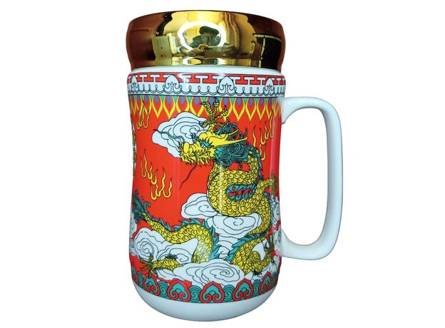 400ml Dragon Print Ceramic Coffee Cup / Mug with Mirror Lid