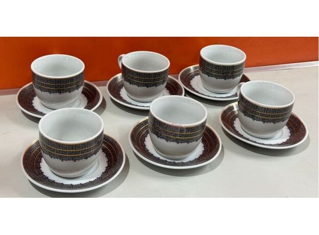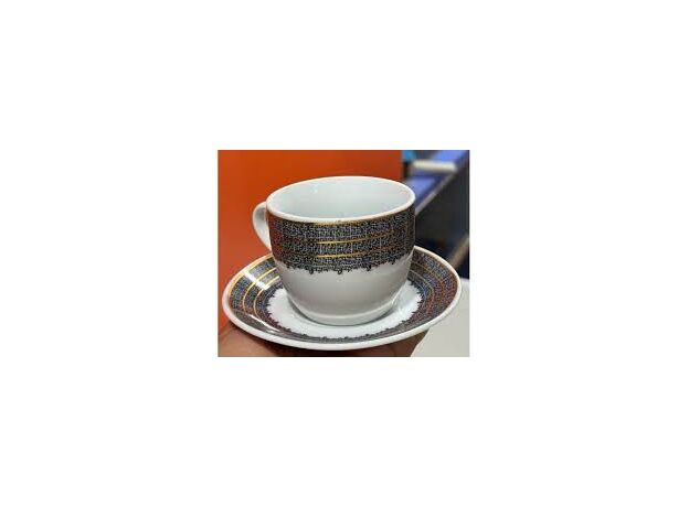 Black Pattern - 12pcs Tea Cup Saucer Set Highly Durable Resistant ( 6pcs Cup + 6pcs Saucer )