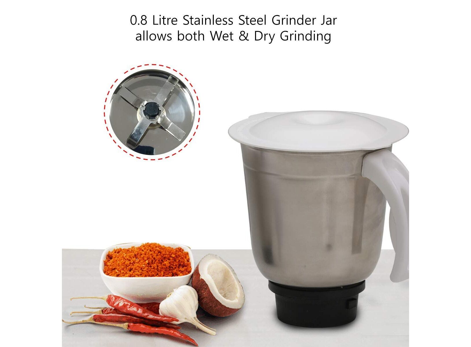 The set includes Two different jar sizes for multiple kitchen needs — a large jar for wet grinding, a medium jar for dry grinding, and a small chutney jar. Each jar comes with a sturdy lid and handle for safe and easy use. Perfect for those who need to replace damaged or worn-out jars without buying a new mixer.