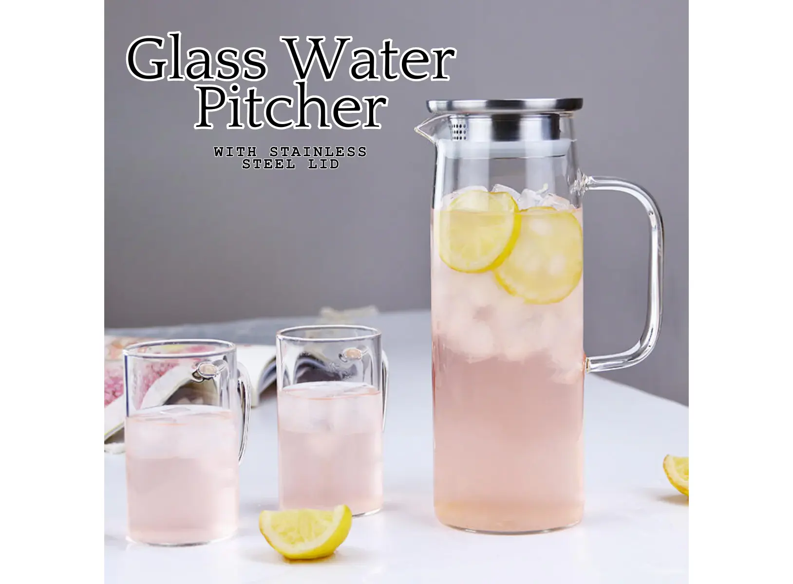 This image features a Locaupin Borosilicate Glass Water Pitcher with a Stainless Steel Lid.