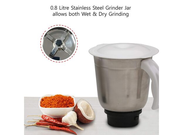The set includes three different jar sizes for multiple kitchen needs — a large jar for wet grinding, a medium jar for dry grinding, and a small chutney jar. Each jar comes with a sturdy lid and handle for safe and easy use. Perfect for those who need to replace damaged or worn-out jars without buying a new mixer.