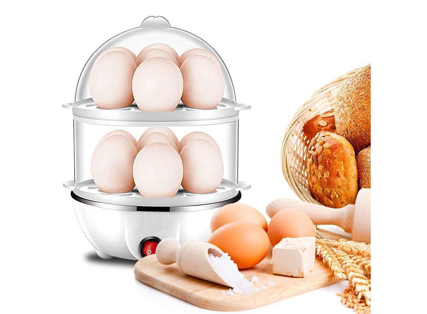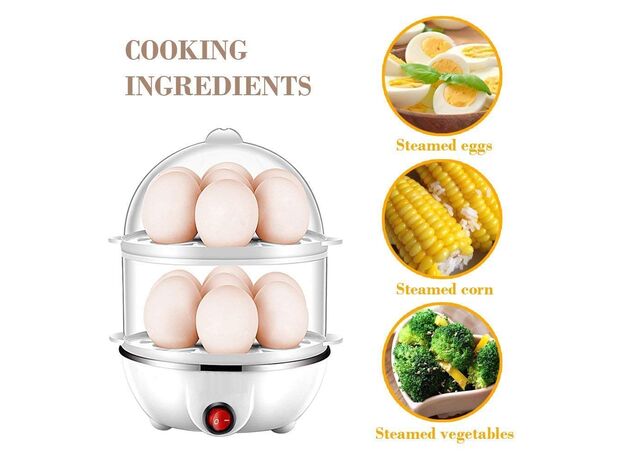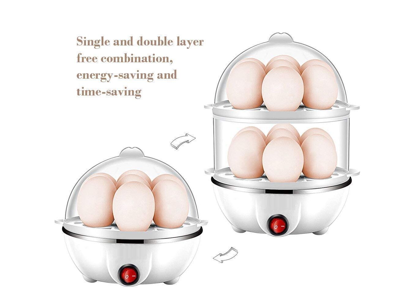 Double Layer Design: Cook up to 14 eggs at once (7 per layer).