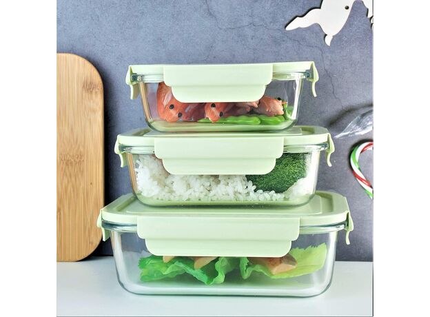 *Set Includes 3 BPA-Free Borosilicate Glass Containers And 3 Plastic Airtight Locking Lids