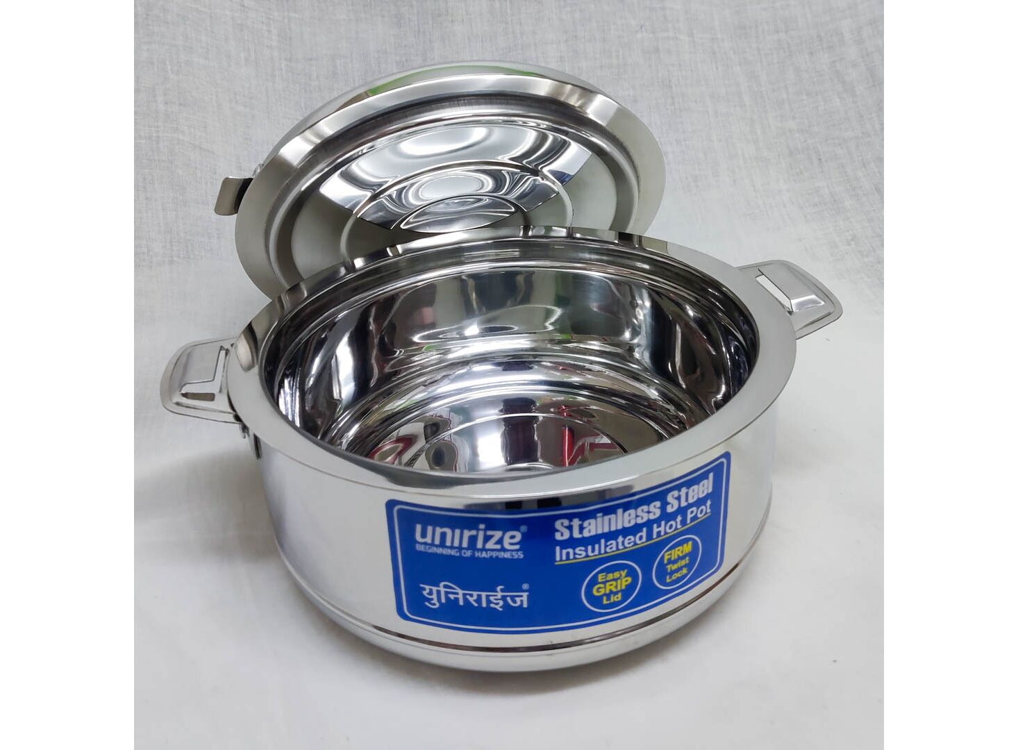 Keep your meals hot and fresh for hours with the Unirize Swift Hot Pot (1000ml). Designed with advanced double-wall insulation and a stainless-steel body, this hot pot maintains food temperature—whether hot or cold—for a long time. The mirror-finish design adds a touch of elegance to your dining table, while the sturdy handles make it easy to carry and serve. Perfect for storing rice, curries, chapatis, and biryanis during family meals, parties, or picnics.