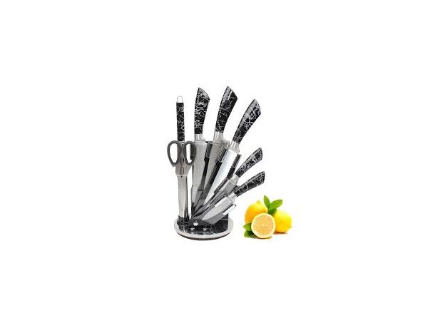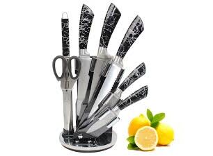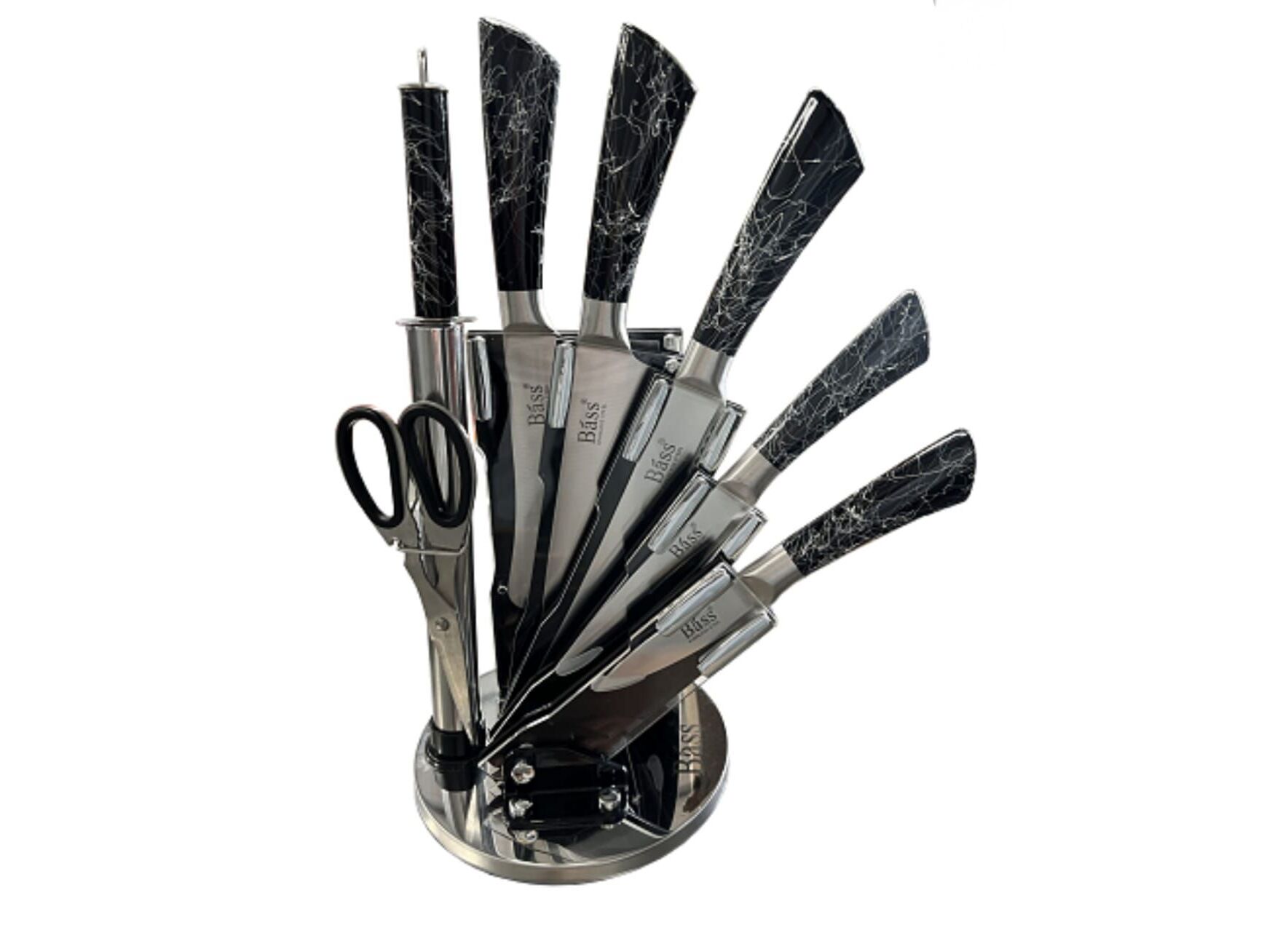 Bass 8-Piece Stainless Steel Kitchen Knife Set with Marble Handle & Rotating Stand