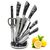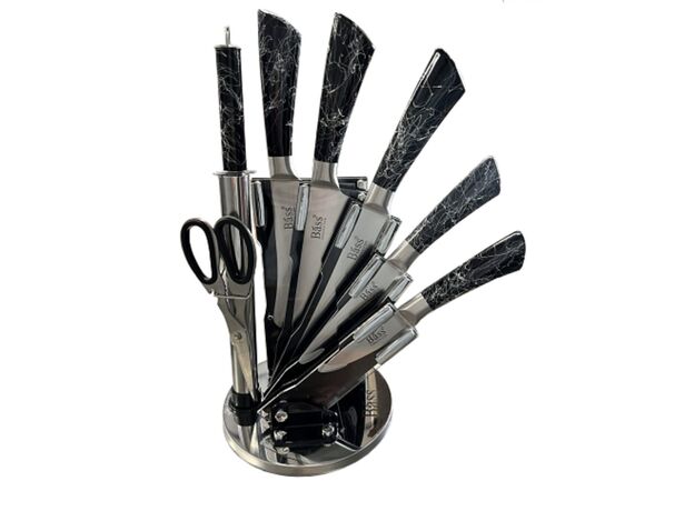 The Bass 8-Piece Knife Set is a premium-quality kitchen set designed for all your cutting, chopping, slicing, and sharpening needs. Each knife features a sharp stainless-steel blade and a beautiful marble-pattern handle that offers style and comfort.