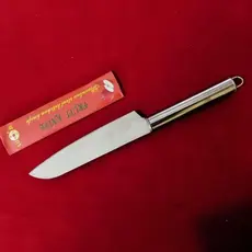 The Bass Kitchen Knife is a durable stainless steel knife designed for effortless cutting, chopping, and slicing. It features a razor-sharp blade for precise performance and a comfortable wooden handle that ensures a secure, non-slip grip while cooking.