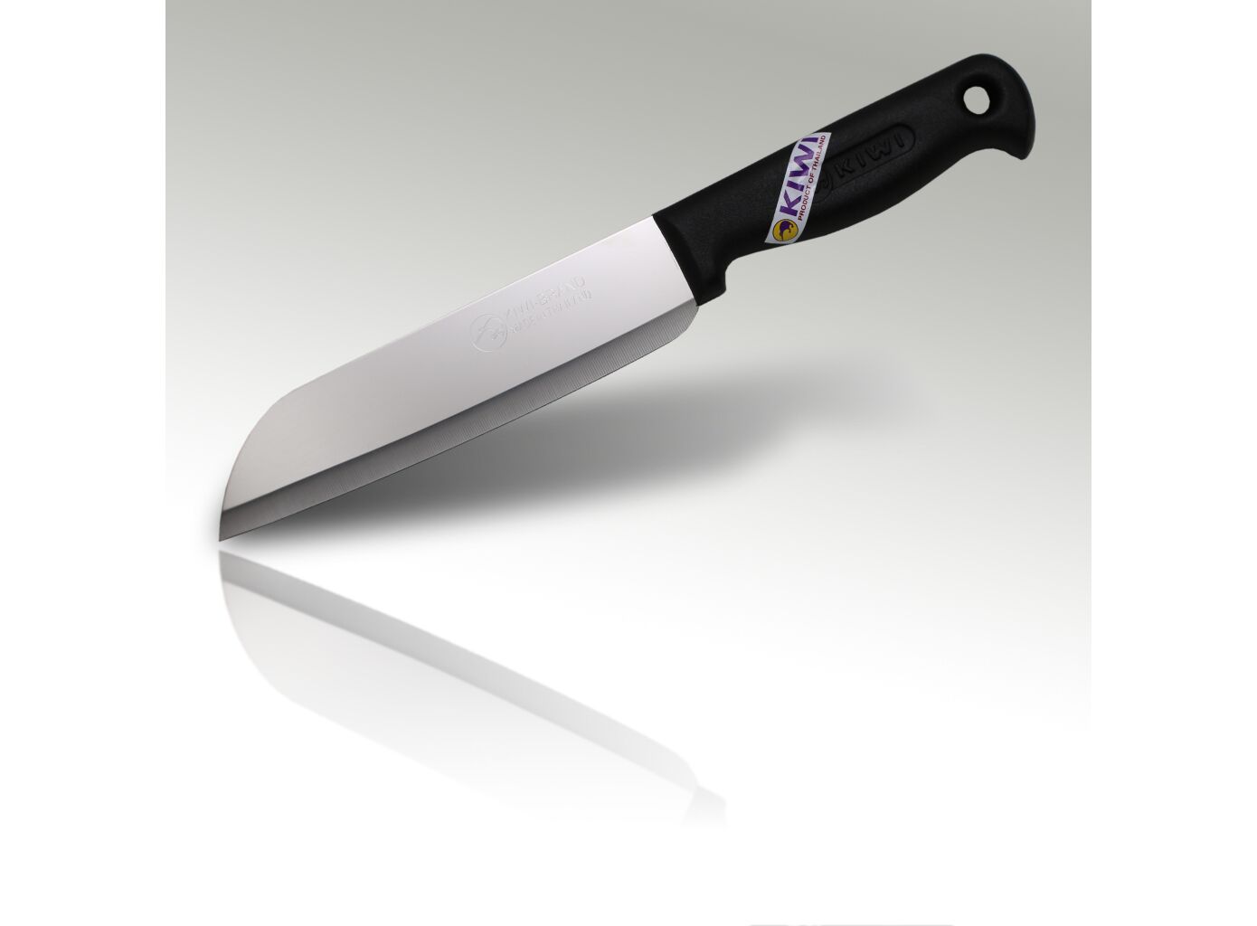 The Kiwi 475 Kitchen Knife is a durable and sharp stainless steel knife perfect for everyday cooking. Its razor-sharp blade allows smooth and precise cutting, while the ergonomic handle ensures a firm and comfortable grip during use.