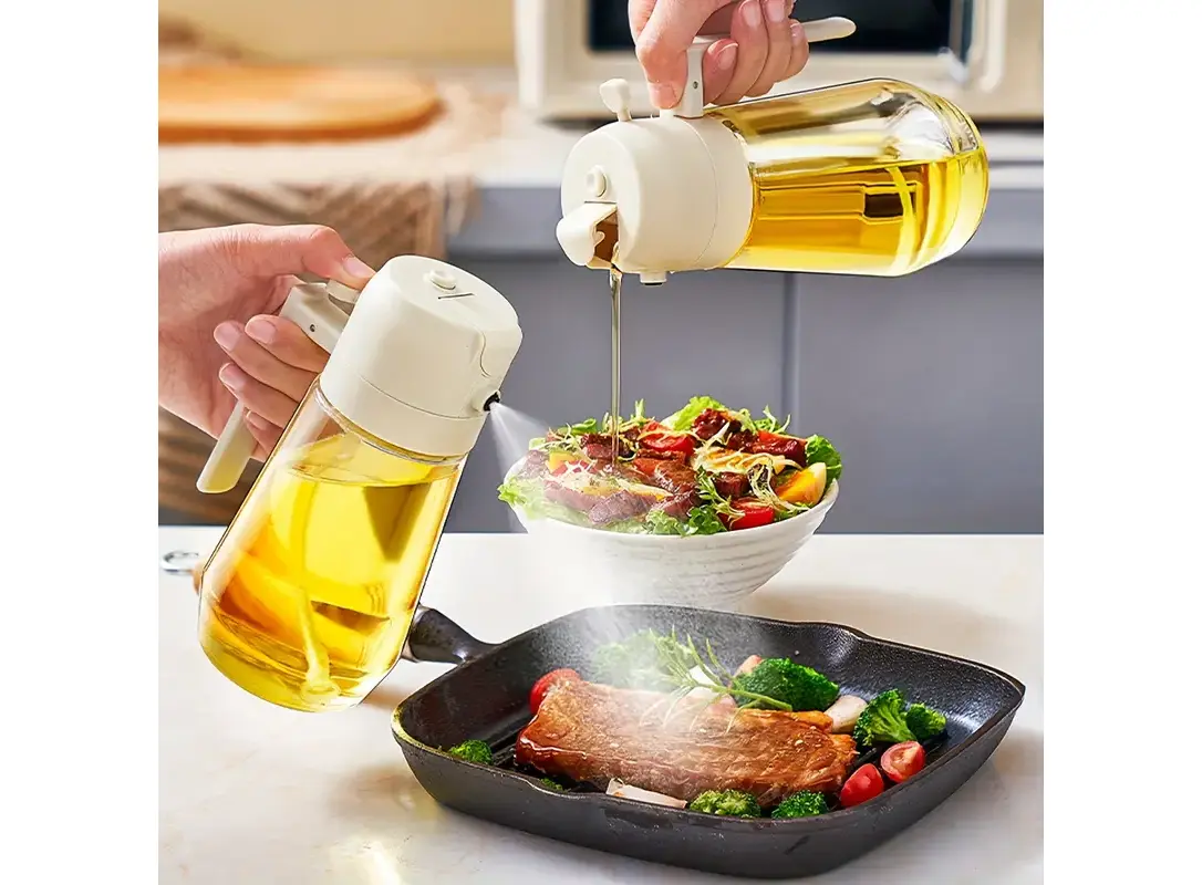 2-in-1 Function – Spray oil or pour oil as needed