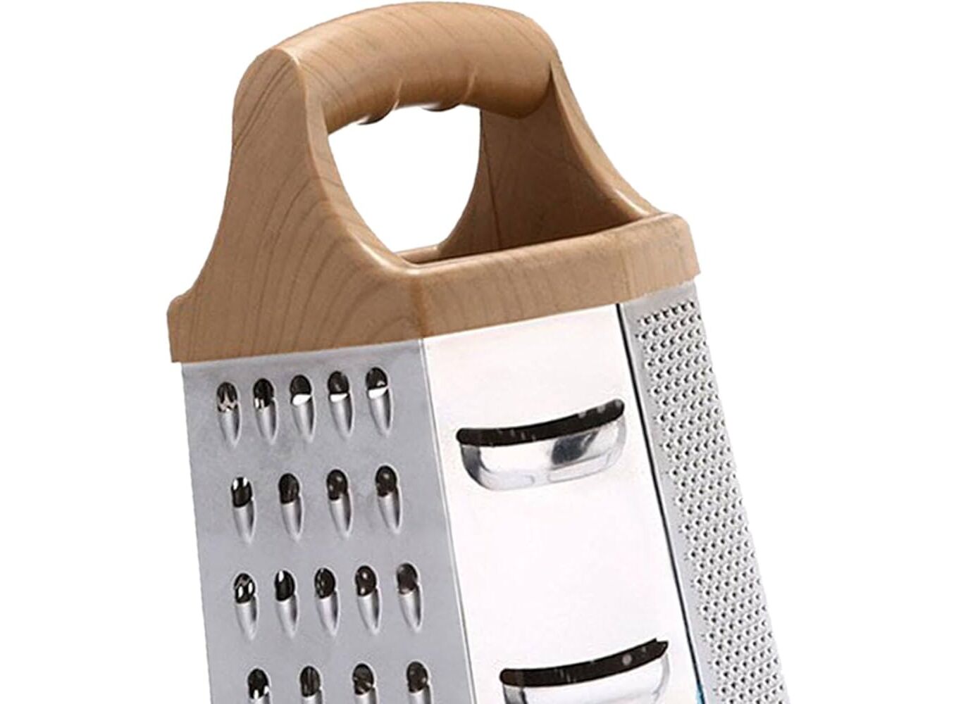 6 In 1 Multifunctional Stainless Steel Box Grater With Wooden Design Handle For Comfortable Grip