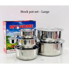 ✔ यस Stock Pot सेट मा पाउनुहुनेछ 23cm = 3.5L / 21cm = 3L / 19cm = 2.5L / 17cm = 2L / 15cm = 1L लिटरका डेक्चीहरू
