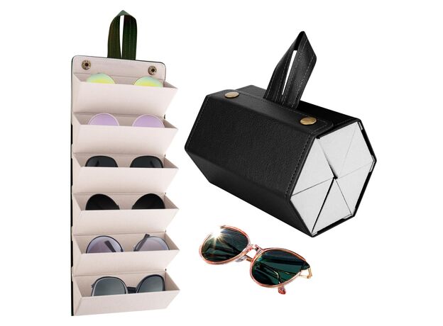 Sunglasses Travel Case, 6-Slot Glasses Storage Box, Foldable Glasses Storage Case, PU Leather Eyewear Storage Box, Multiple Travel Sunglasses Organizer Case, Hanging Glasses Case for Women Men