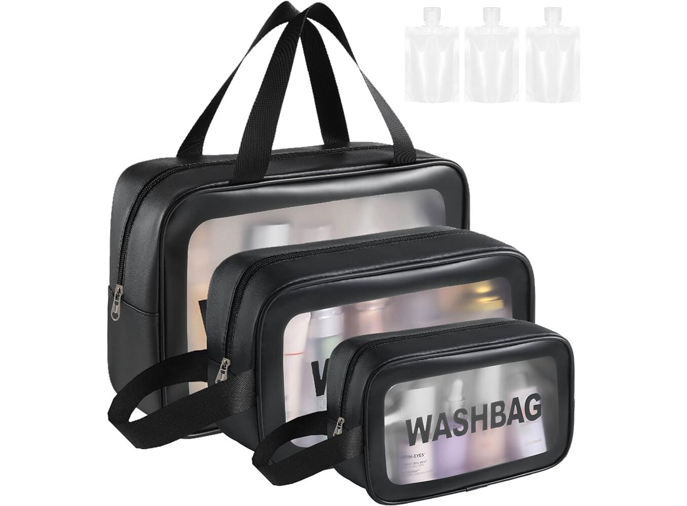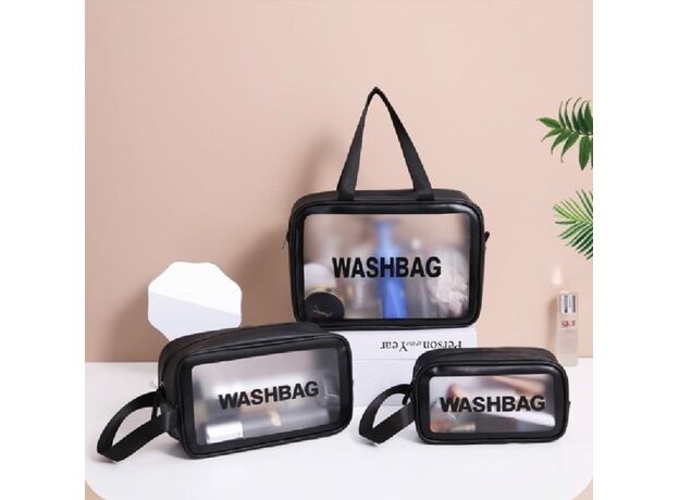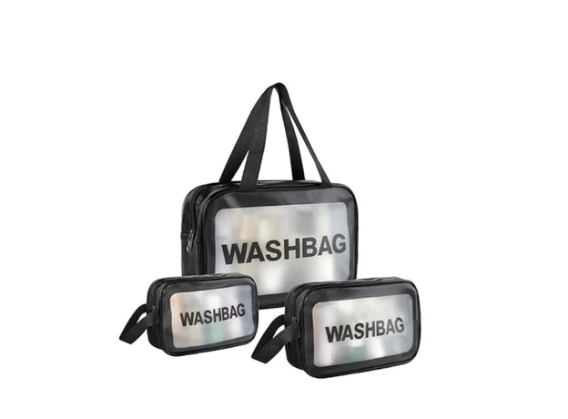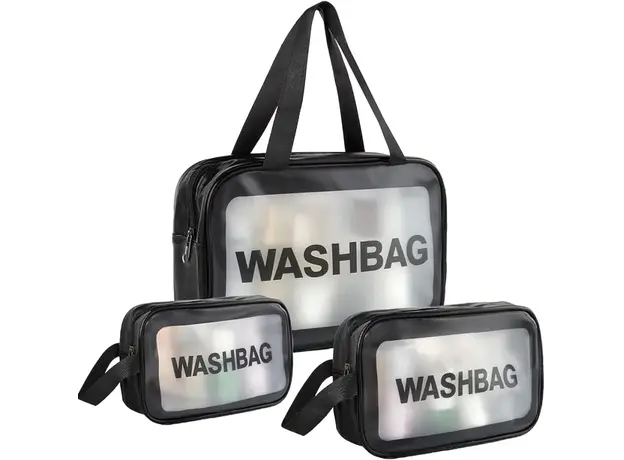 Black- 3PCS BC Wash Bag Travel Organizer Makeup Pouch Toiletry Bag for Women